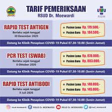 Update Perubahan Tarif Pemeriksaan Rapid Test Rsud Krt Setjonegoro