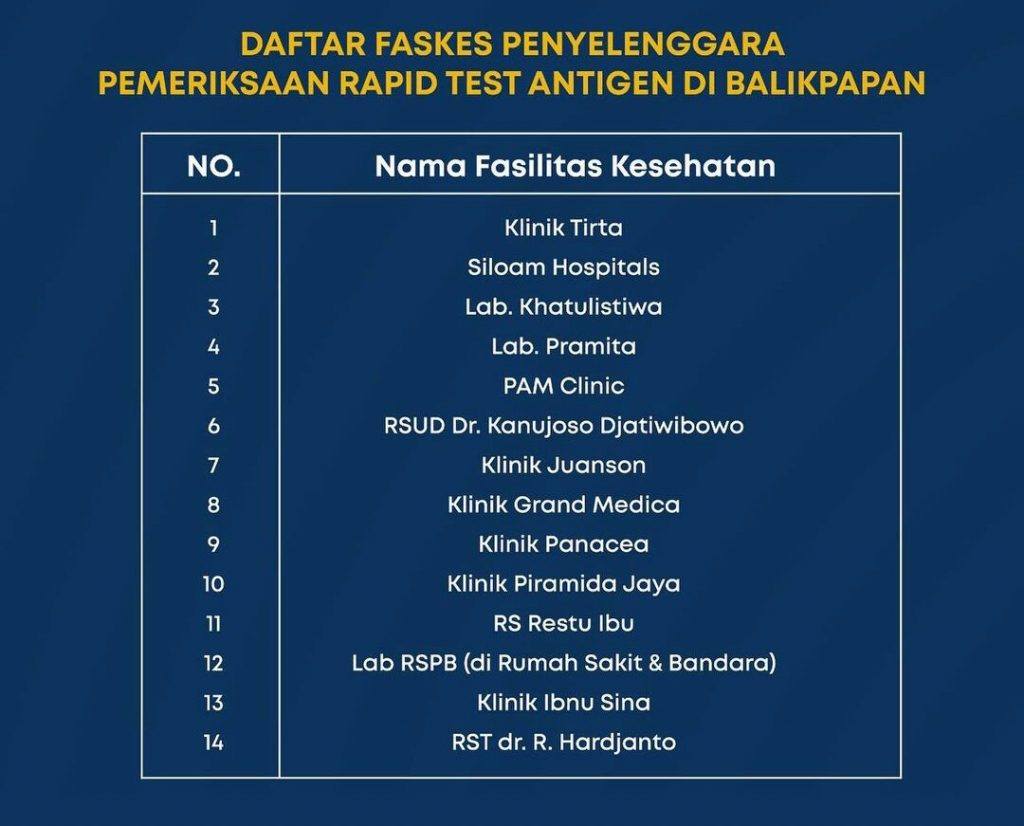 11 Faskes Di Balikpapan Yang Layani Rapid Test Antigen Inibalikpapan Com